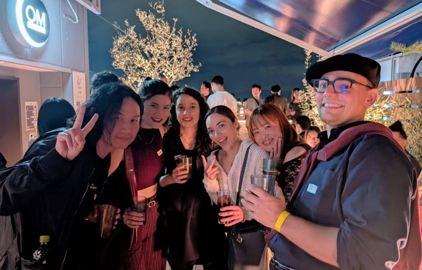 The venue is a stylish rooftop bar near JR Kyoto Sta.