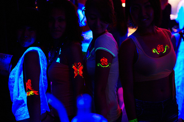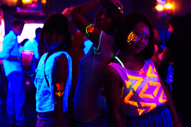 Enjoy “Black Light Neon Party” at Sam & Dave One which is the famous club in the center of Shinsaibashi.