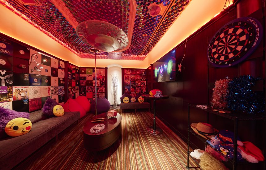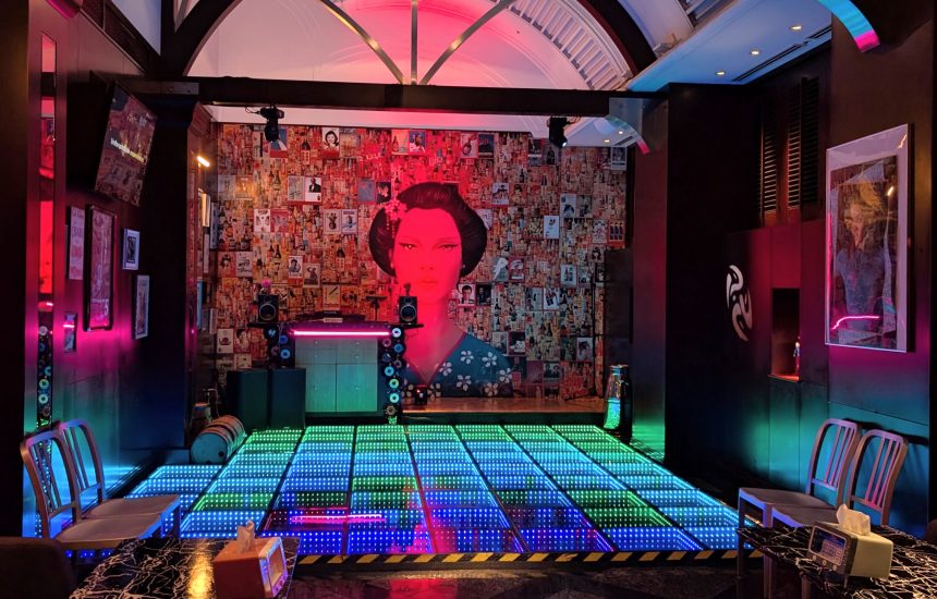 お洒落で広々とした店内にはカラフルなダンスフロアやテラス、カラオケルームなどテーマの異なる空間が混在しているのが魅力。